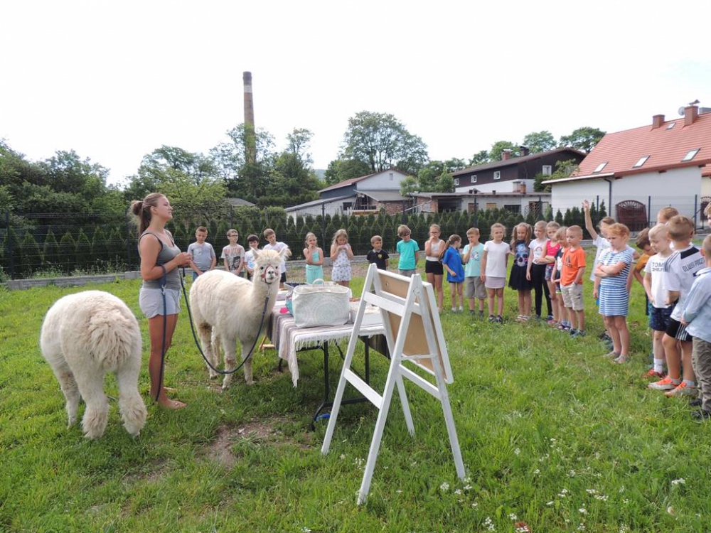 6 czerwca klasy I-III wzięły udział w warsztatach na temat życia i znaczenia w przyrodzie kuzynów lam,czyli alpak. Uczniowie dowiedzieli się o tym, jakiego koloru sierść mają alpaki. Dotykali różnego rodzaju wełny. Zobaczyli jak wygląda kołowrotek. Mieli możliwość pogłaskać prawdziwe alpaki. Na koniec mogli zrobić sobie z nimi zdjęcie.