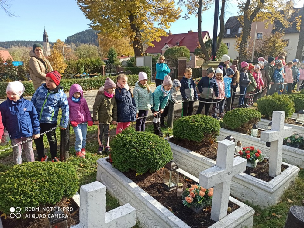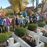 Dzieci ze Szkolnego Koła Wolontariatu klas 1-3 wraz z opiekunami, tuż przed świętem Wszystkich Świętych, wyposażeni w rękawice, grabie, szczotki i inne akcesoria ogrodnicze odwiedziły lubawski Cmentarz. Uczniowie oddali hołd żołnierzom poległym za ojczyznę, porządkując mogiły, grabiąc liście i zapalając znicze. Pamięć poległych została uczczona minutą ciszy. Celem naszej akcji jest nie tylko pomoc, ale także kształtowanie postaw patriotycznych i szacunku, wdrażanie do odpowiedniego zachowanie się w miejscach pamięci narodowej i miejscach publicznych. Mamy nadzieję, że tradycja sprzątania cmentarza przez nasz Szkolny Klub Wolontariatu nigdy nie zaniknie.
