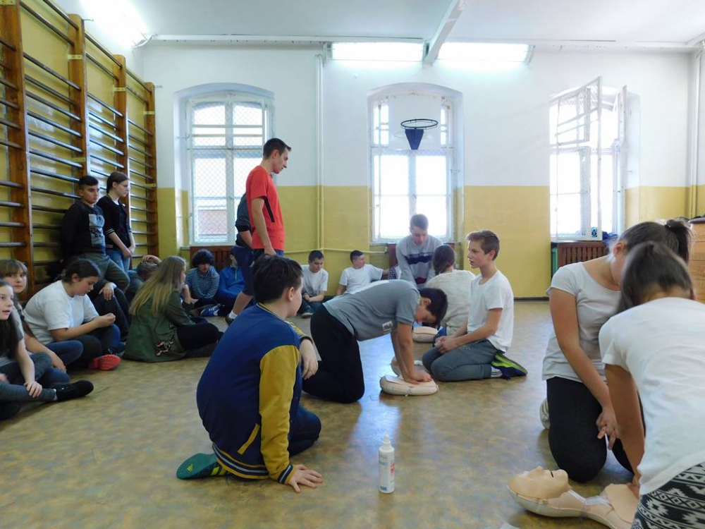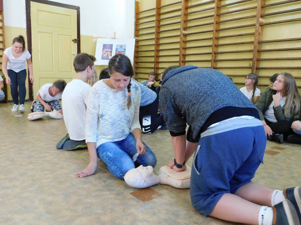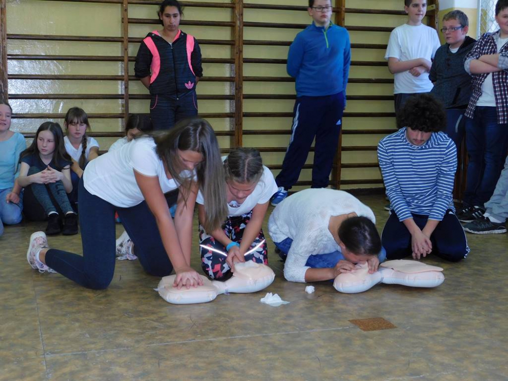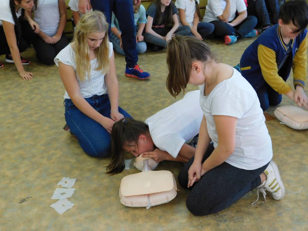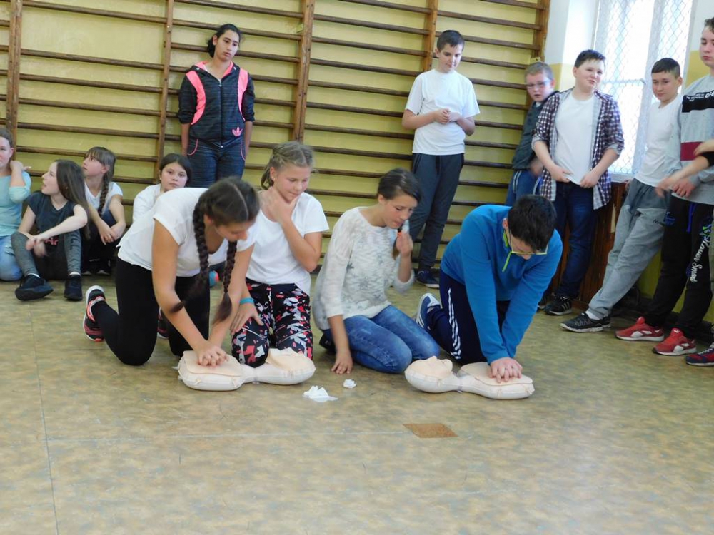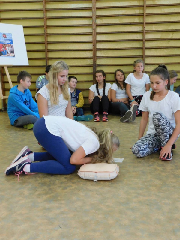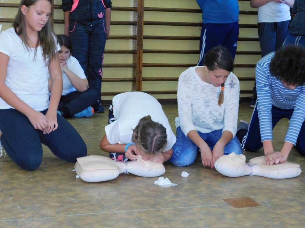 Prawie czterdziestu uczniów z klasy 7 b i 7 c naszej szkoły stanęło dziś (16.10.2017r) do bicia rekordu w resuscytacji krążeniowo - oddechowej. Wszystko zaczęło się tak jak w całej Polsce o godzinie 12 i trwało 30 minut. Całość była utrwalana na filmie DVD i zostanie przesłana do organizatora całej akcji czyli Fundacji Wielkiej Orkiestry Świątecznej Pomocy. W tym roku uczniowie wykonywali resuscytację na trzech fantomach jednocześnie. Koordynatorem akcji na terenie szkoły był pan Krzysztof Jawor, który dziękuje za bezcenną pomoc nauczycielom wychowania fizycznego panom: Arturowi Bodzkowi, Łukaszowi Winczy oraz wspaniałym uczniom, bez których pomocy ta akcja by się nie odbyła. Wyniki akcji poznamy za kilka dni.