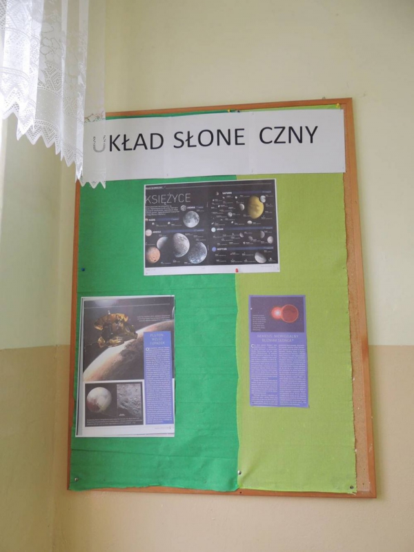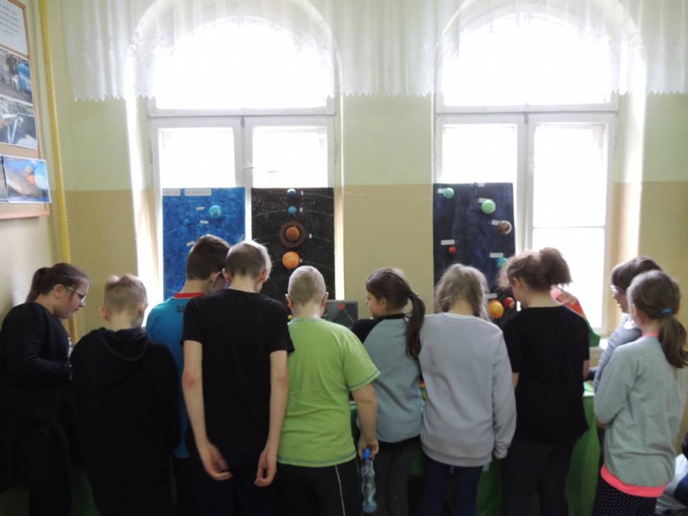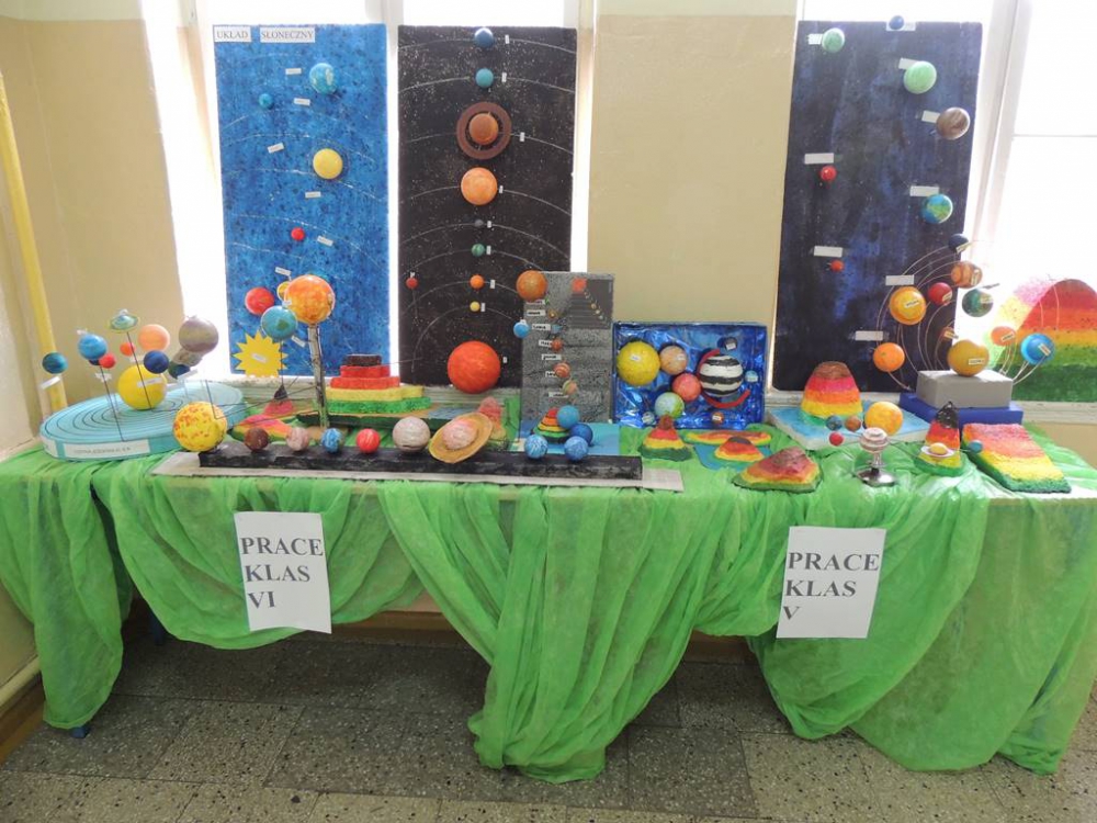 Dużym zainteresowaniem ciszy się wystawa prac uczniów klas V i VI, którą oglądać można na I piętrze naszej szkoły przy ulicy Bocznej 13. Tematyka prac obejmowała układ słoneczny oraz wysokość względną i bezwzględną. Organizatorem wystawy jest pani Renata Kozubska - Sopata.