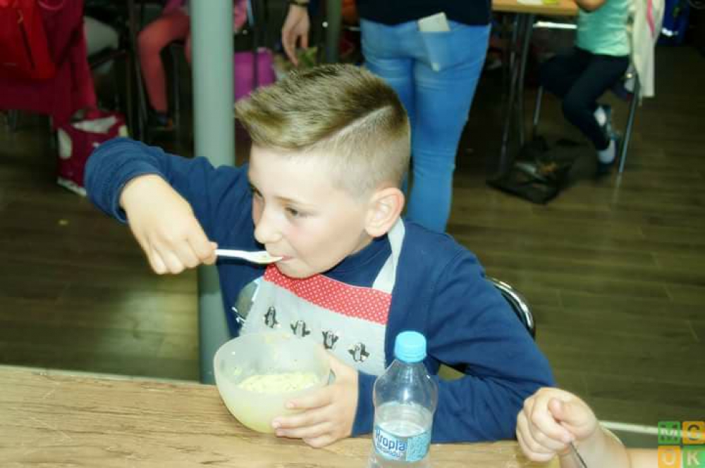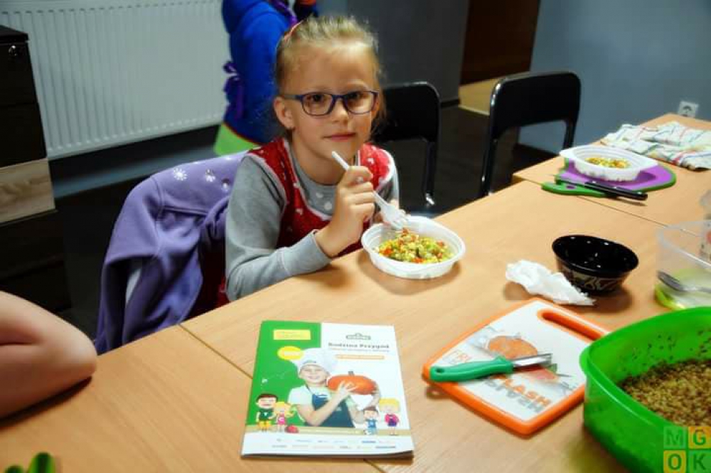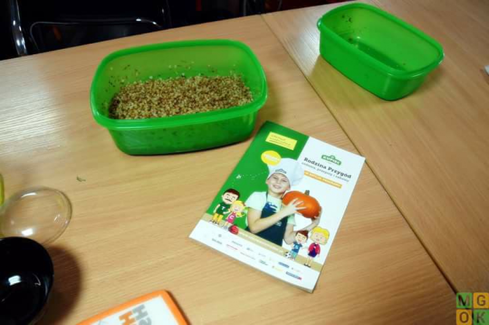 Dzisiaj, we wtorkowe przedpołudnie (22.05.br. ). W ramach programu "Zdrowe-nietrudne", który ma na celu edukację najmłodszych w zakresie zdrowego odżywiania się uczniowie klasy II "a" Szkoły Podstawowej z wychowawczynią Joanną Łazarowicz i pomocą rodziców przygotowali przysmaki z kasz. Dzieci były podzielone na grupy. Każda grupa przygotowywała posiłek dla pozostałych uczestników programu. Jedna sałatka była z kaszy gryczanej, z piersią kurczaka, kukurydzą, papryką i zielonym ogórkiem. Druga przekąska to pasta z kaszy gryczanej z suszonymi pomidorami i odrobiną majonezu. Natomiast trzecia potrawa to najsmaczniejszy, ale nadal zdrowy deser - mus z kaszą jaglaną i bananami, przekładany z musem z kiwi. Pyszności...;)